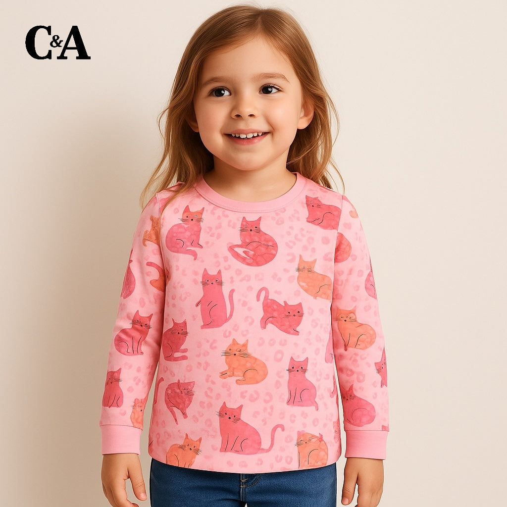 ALLOVER KITTY PRINT BABY PINK T-SHIRT