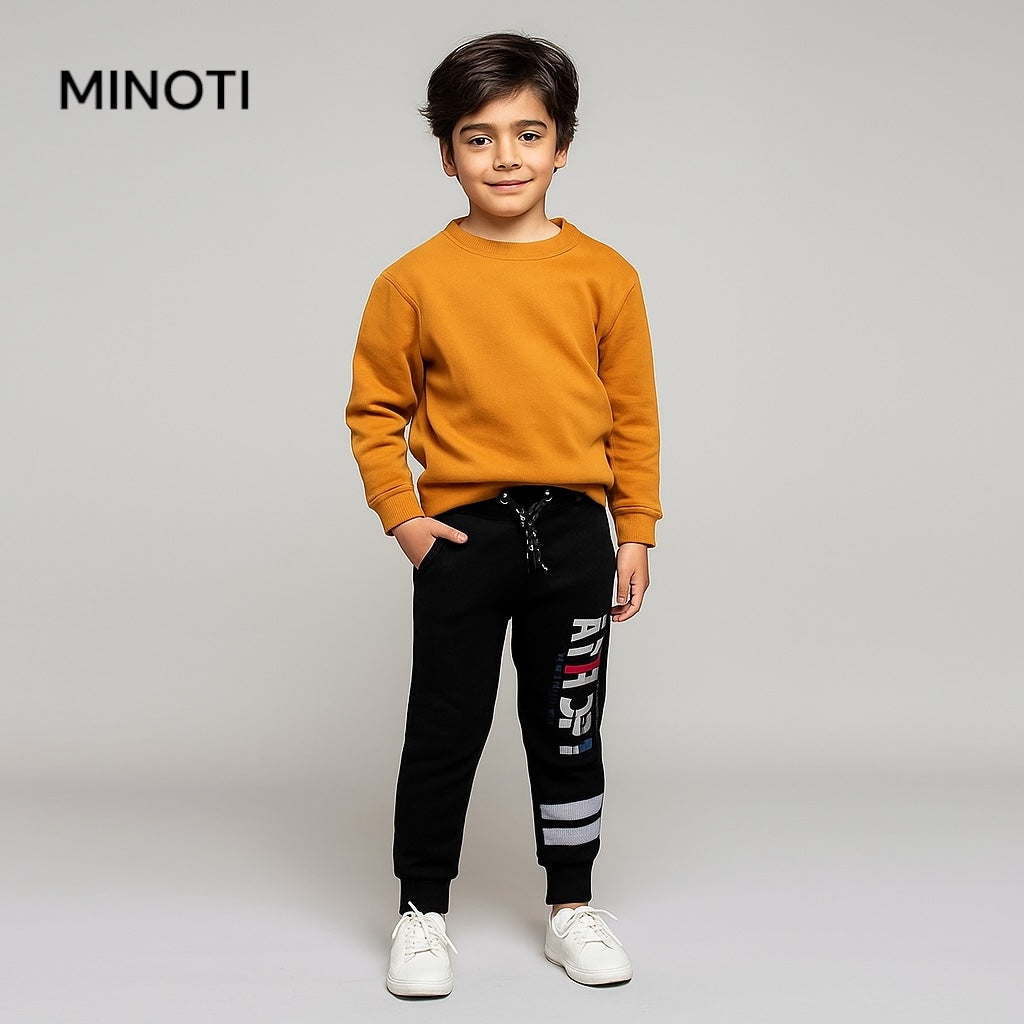 "The Athletic dept. Black trouser is a must-have for active boys. Made with soft black fleece, these trousers provide ultimate comfort and durability while staying true to the boy's athletic style. Perfect for sports or everyday wear, these trousers are a practical and stylish addition to any wardrobe."