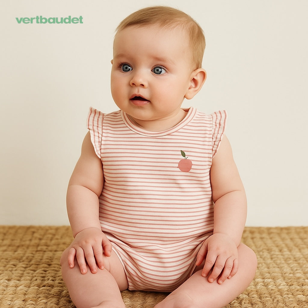This CHERRY PRINT STRIPE BODY SUIT is made from soft jersey fabric, perfect for your little one's delicate skin. The adorable cherry print adds a fun touch, while the bodysuit design ensures comfort and convenience. A must-have for any baby girl's wardrobe.