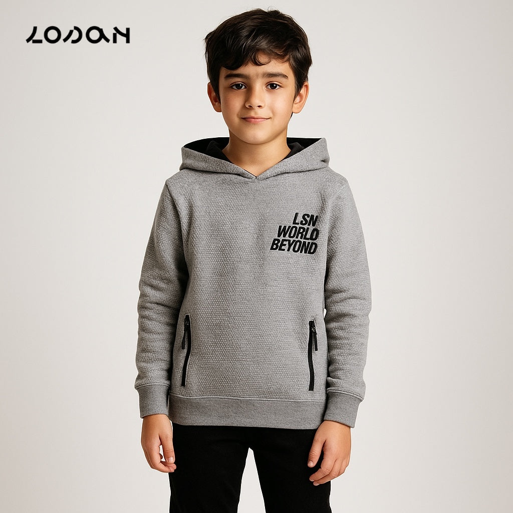 Experience the ultimate in winter style and function with our World Beyond Hood. Featuring intricate pocket embroidery and a textured all-over grey design, this hooded jacket is perfect for keeping boys warm and on-trend. Stay ahead of the fashion game with this must-have piece.