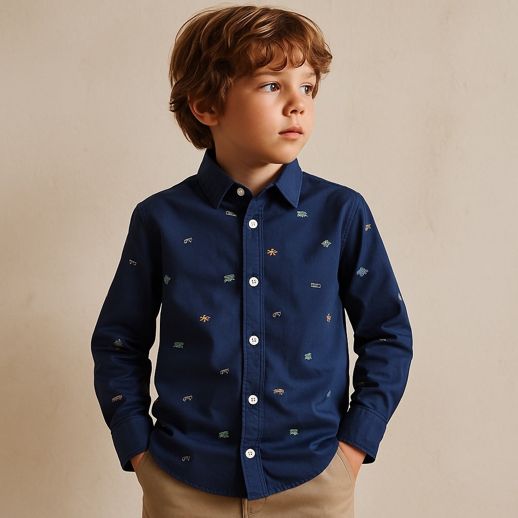 SELF PRINT NAVY BLUE CASUAL SHIRT